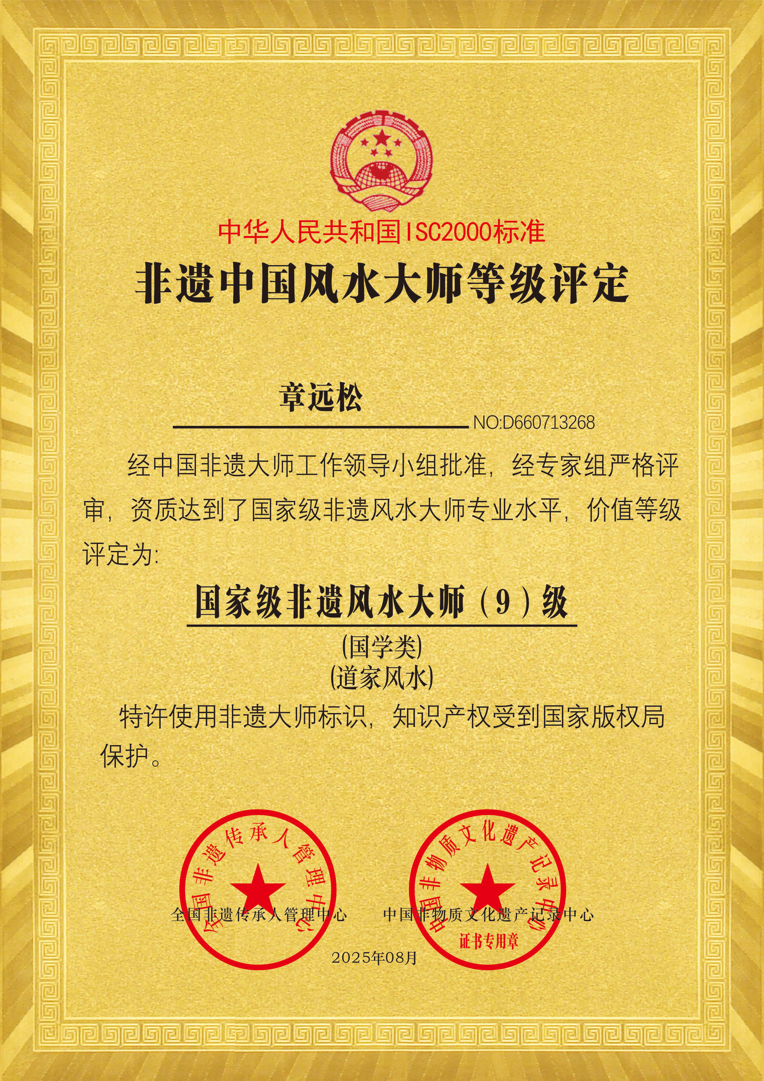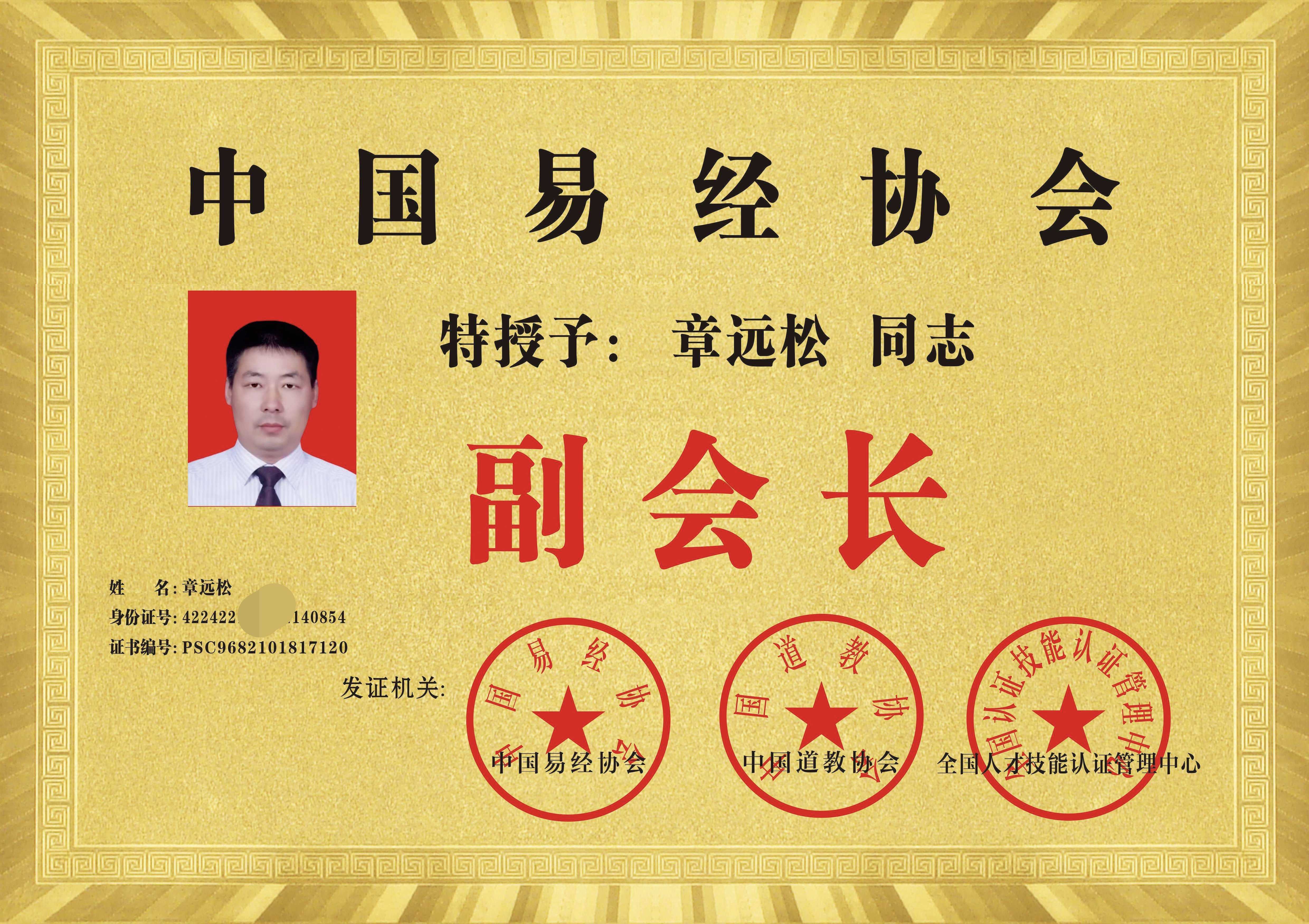 2024年4月获得中国易经协会、中国道家协会《中国易经风水道学大师》资格证书。
